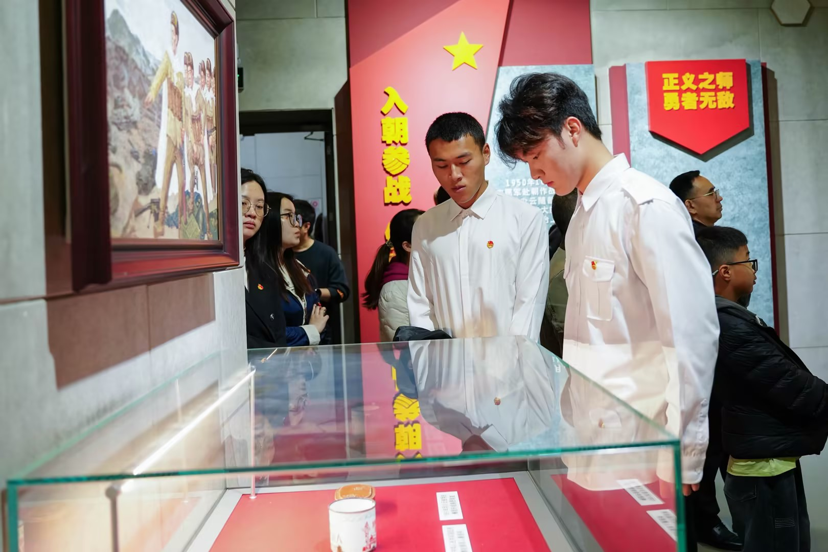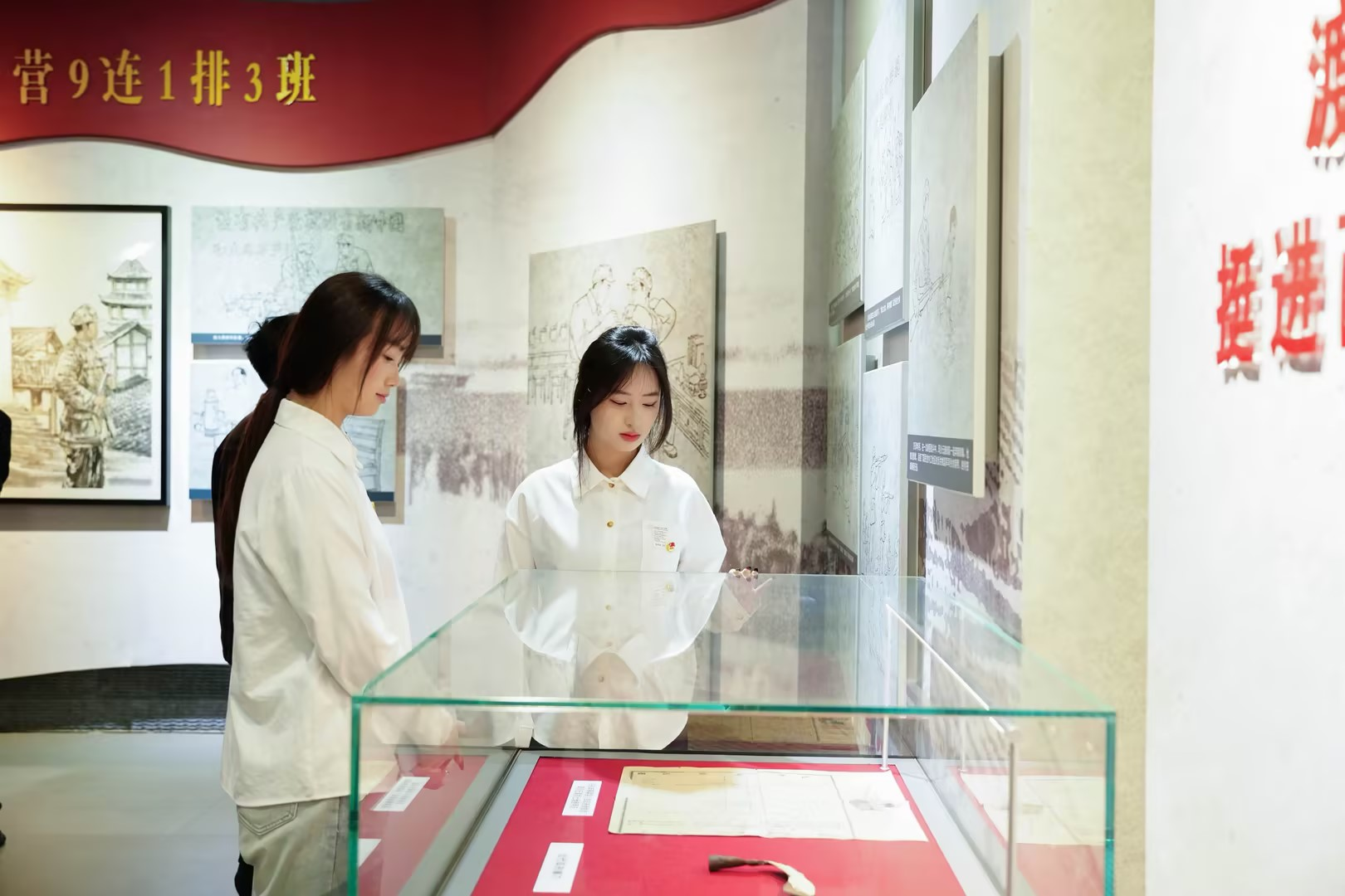 随后,在纪念馆解说员的带领下,全体成员有序参观纪念馆展厅。展厅内,序厅、书画陈列厅与四个英雄事迹展览厅依次展开,邱少云烈士的珍贵遗物、泛黄的历史图片、熠熠生辉的奖章等文物静静陈列,生动再现了烈士短暂而光辉的一生。解说员深情讲述了邱少云烈士在抗美援朝战场上,严守潜伏纪律,面对烈火焚身岿然不动,直至壮烈牺牲的英雄事迹,详细介绍了他用生命诠释忠诚、用热血铸就军魂的革命历程。每一件文物、每一段故事,都让在场学子深受震撼,大家认真聆听、驻足细看,深刻体会少云精神的深刻内涵,接受了一场直击心灵的红色精神洗礼。